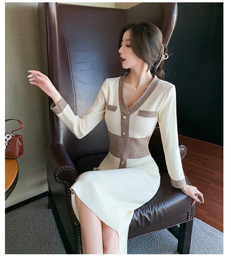 ニットワンピース ワンピース ニットソー ミモレ ミモレ丈 長袖 萌袖 Vネック スリム タイト ストレート スリット バックスリット ボタン かわいい 大人可愛い きれいめ シンプル カジュアル 大人 上品 おしゃれ お洒落 レトロ 大人女子 こなれ感 ラフ ガーリー 個性的 モード系 エレガント モダン 抜け感 S M L XL 茶色 ブラウン ピンク パステルカラー バイカラー 無地 春 秋 レディース OL 通勤 デート お出かけ 韓国系 オルチャン コーデ スタイル モテ インスタ映え