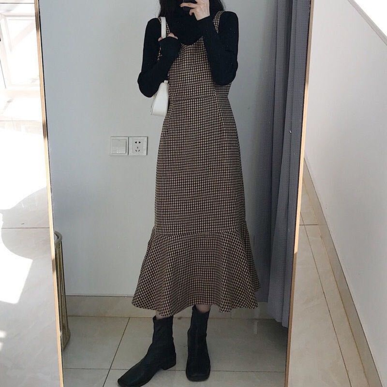 セットアップ ジャンパースカート ミモレ ミモレ丈 長袖 萌袖 ハイネック タートルネック セミフレア 切り替えデザイン 裾フレア 2点セット ツーピース かわいい 大人可愛い きれいめ シンプル カジュアル 大人 上品 おしゃれ お洒落 レトロ 大人女子 こなれ感 ラフ ガーリー モード系 エレガント モダン 抜け感 S M L XL 茶色 ブラウン 大人カラー 秋カラー 無地 柄 チェック柄 秋 冬 レディース OL 通勤 デート お出かけ 着回し 普段使い 重ね着 韓国系 オルチャン コーデ モテ