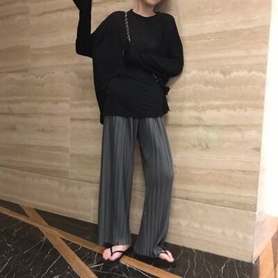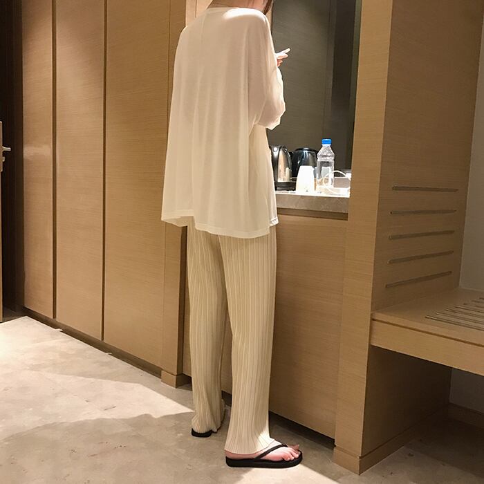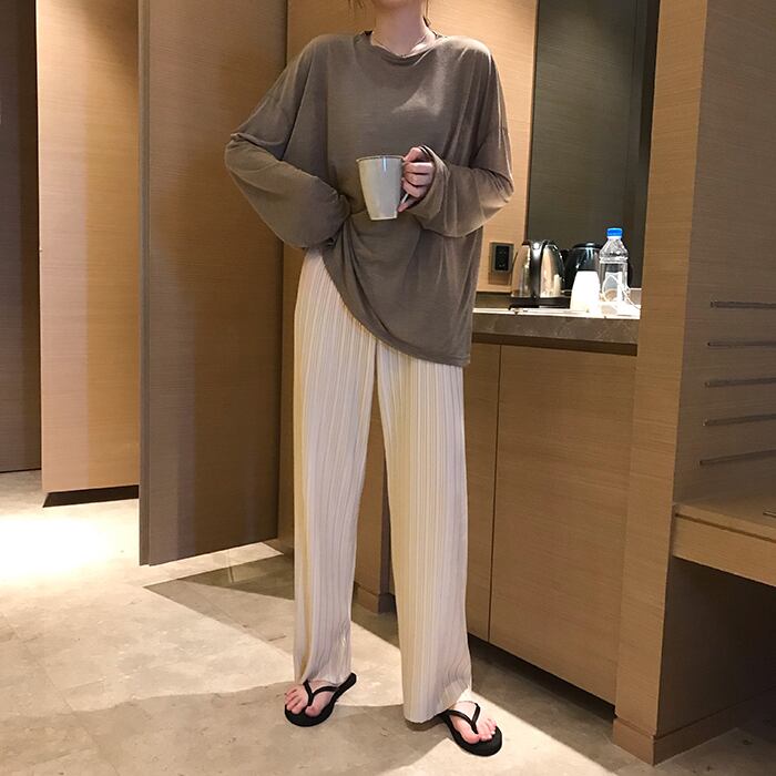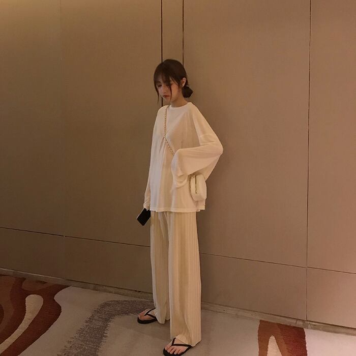 薄手長袖Tシャツとワイドレッグパンツのお得なセット。
