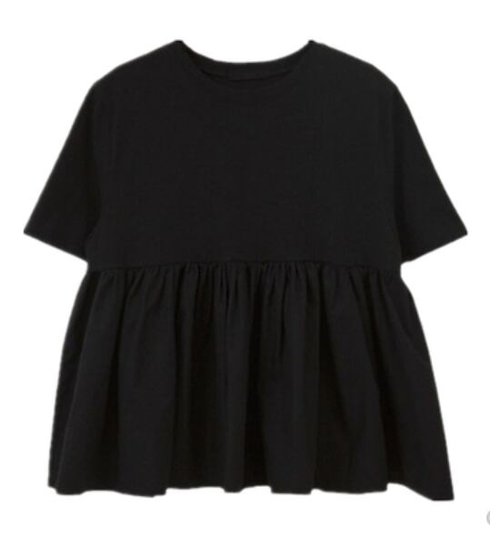 フェミニン シンプル チュニック 韓国風 トップス Tシャツ シャツ カットソー 白シャツ 白トップス 袖あり 半袖 ラウンドネック 襟なし フレア Aライン へプラム ハイウエスト ふんわり ゆったり かわいい 大人可愛い きれいめ カジュアル 大人 おしゃれ お洒落 大人女子 こなれ感 ラフ 抜け感 無地 夏 10代 20代 30代 40代 マタニティ OL 学生 お出かけ 女子会 休日 学校 カレッジ 楽ちん S M L XL 白 ホワイト 黒 ブラック