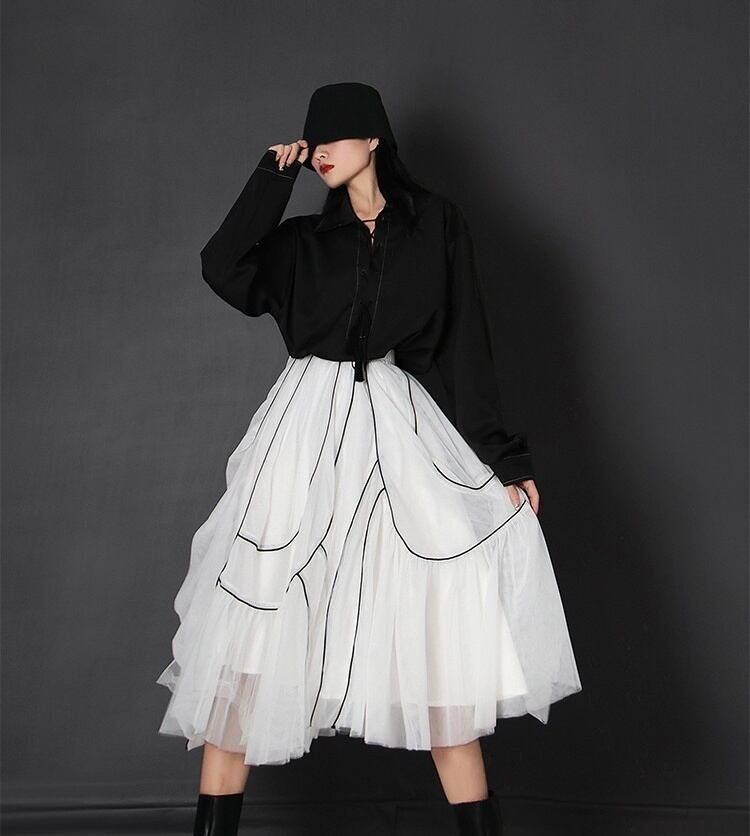 モノトーンのラインデザインがスタイリッシュなボリュームスカート