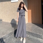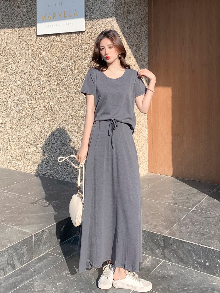 セットアップ ルームウェア 部屋着 ロングスカート ロング ロング丈 袖あり 半袖 ラウンドネック フレア セミフレア スリット ビスコース繊維 上下セット 2点セット ツーピース お得 かわいい 大人可愛い シンプル カジュアル おしゃれ お洒落 こなれ感 ラフ ルーズ 主役級 存在感 フェミニン シック 大人カジュアル 無地 春 夏 10代 20代 30代 デート お出かけ 女子会 お泊まり 休日 アウトドア イベント リゾート 旅行 海 着回し S M L XL 2XL グレー ブラック 体系カバー