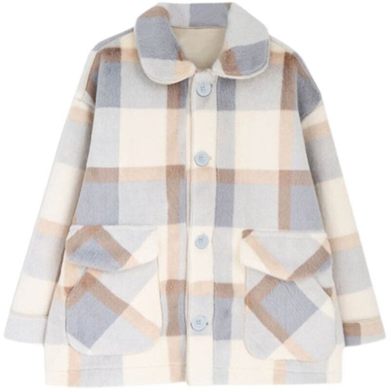 アウター コート ショート ショート丈 ラグラン 襟付き ストレート 裾ワイド ふわふわ ポリエステル ウール 厚手 異素材MIX かわいい シンプル カジュアル おしゃれ お洒落 ラブリー キュート ガーリー 無地 格子柄 秋 冬 クリスマス バレンタイン 10代 20代 30代 レディース 女性用 学生 通学 デート お出かけ 休日 イベント レストラン ショッピング 韓国 韓国系 オルチャン 楽ちん 暖かい 防寒 モテ トレンド 流行 サイズ S M L 色展開 ブルー カーキ