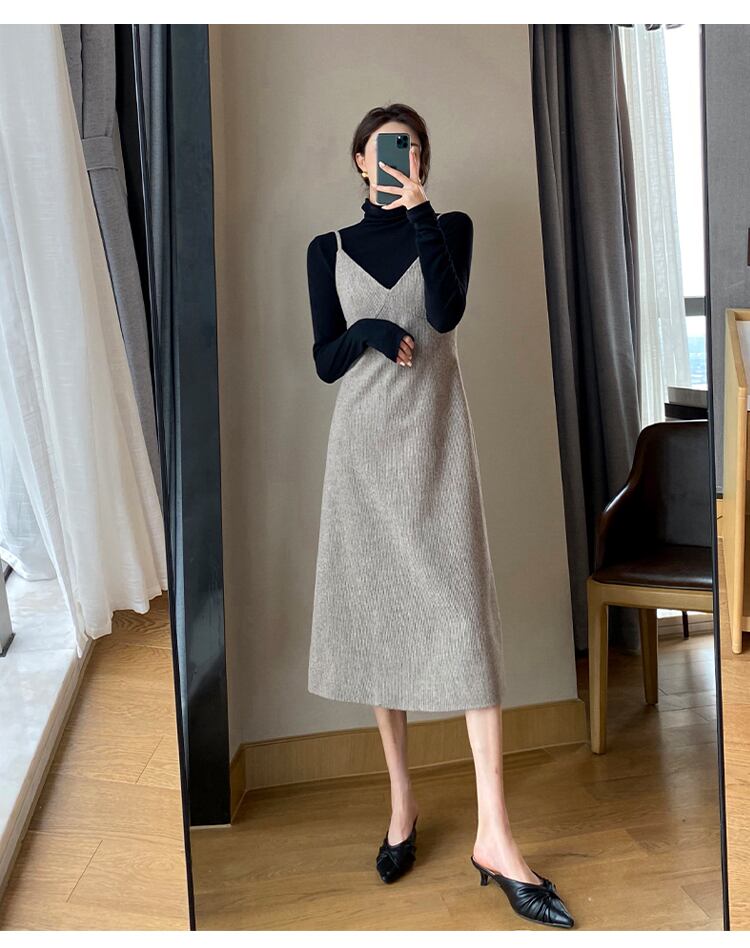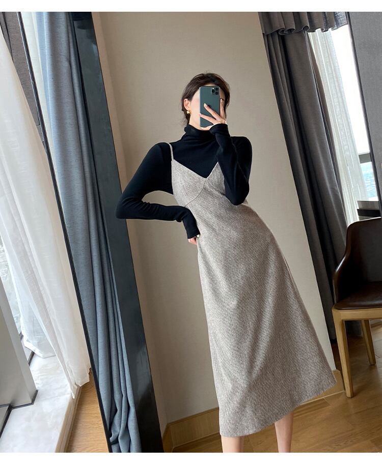 モノトーンカラーがシックな印象のキャミワンピとインナーのセット