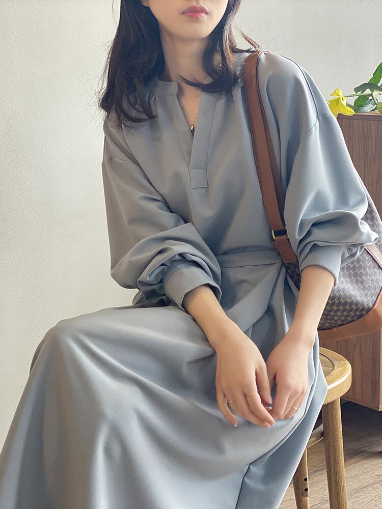 ワンピース ロング丈 袖あり 長袖 襟なし キーネック デザイン 美ライン ニュアンス ベルト ウエストマーク スリット カラバリ ドラマチック かわいい 大人可愛い きれいめ シンプル カジュアル 大人 上品 おしゃれ お洒落 大人可愛い 大人女子 こなれ感 ラブリー キュート ガーリー 個性的 エレガント モダン 主役級 存在感 抜け感 ベーシック ヨーロッパカジュアル ブリティッシュ スタンダード 洗練 無地 エイジレス レディース お出かけ 旅行 着回し 普段使い 重ね着 お揃い