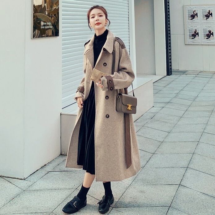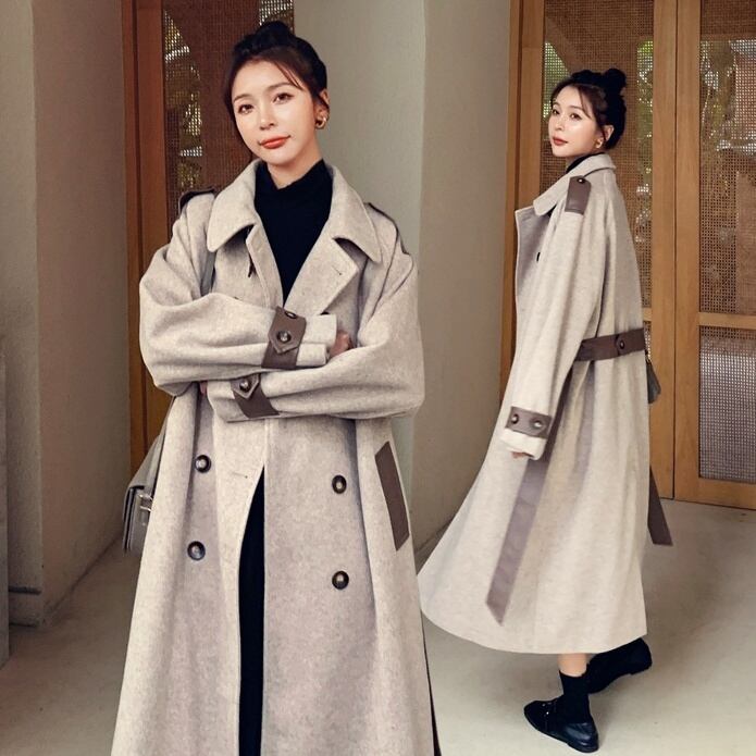 ブラウンとのバイカラー配色がおしゃれ可愛いコート