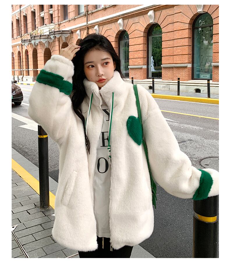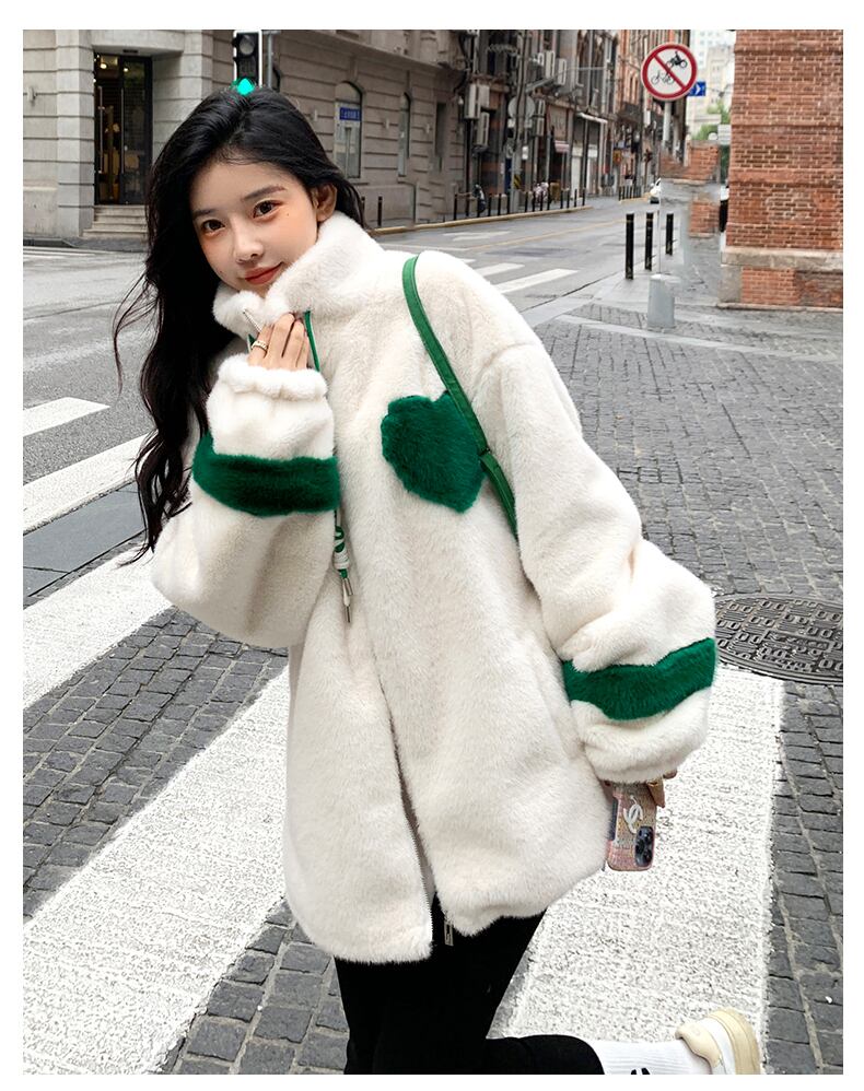 おっきいハートがとっても可愛いもこもこジャケットです。