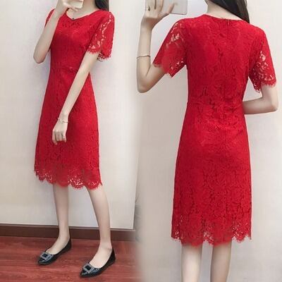 エレガントでキュートなレースを全面に施したワンピースドレスです。