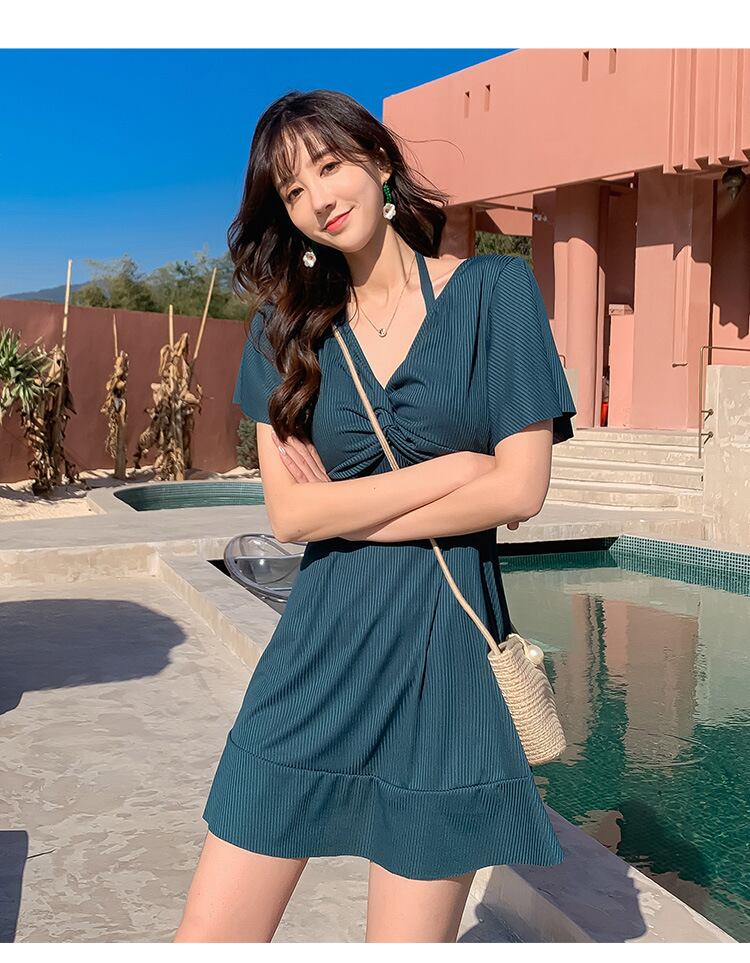 サマーワンピース型のスイムウェアで、プールサイドやリゾートウェアとしても役に立つ一着となっています。