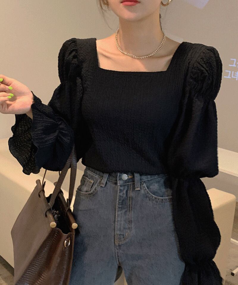 トップス シャツ ブラウス フリーサイズ 無地 スクエアネック トランペットスリーブ 長袖 ブラック 秋 通勤 プルオーバー レギュラー丈 袖あり パフスリーブ フレアスリーブ 襟なし シフォン フリル 切り替えデザイン かわいい 大人可愛い きれいめ シンプル 大人 上品 おしゃれ お洒落 レトロ 大人女子 ラブリー キュート ガーリー 個性的 クール エレガント 10代 20代 レディース 女性用 オフィス OL デート お出かけ パーティー イベント ファッション コーデ スタイル モテ 黒