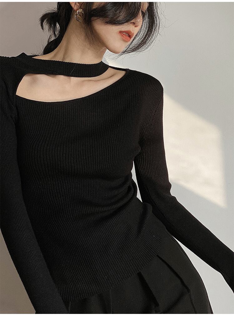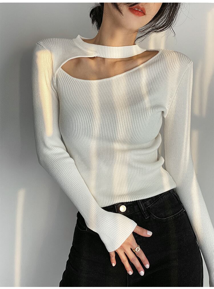 ボトルネックに鎖骨部分のカットワークがセクシー。