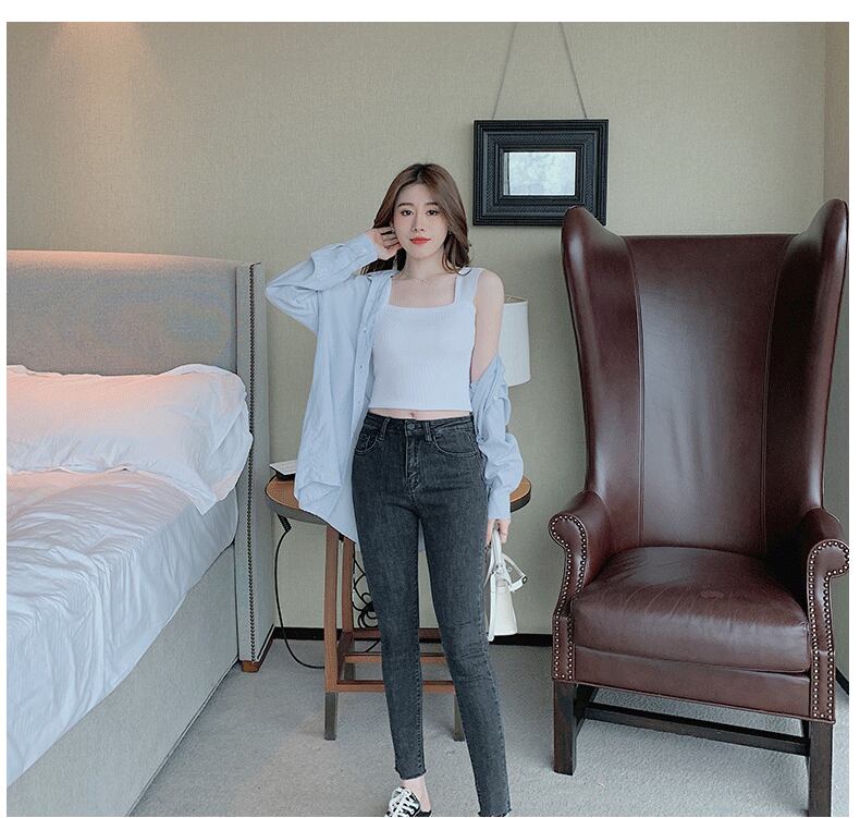 スクエアネッククロップドリブカットソーです。
