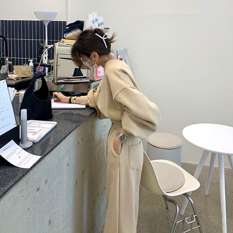 トップス ボトムス セットアップ トレーナー スウェット ジャージ 部屋着 袖あり 長袖 ボリューム袖 Vネック ハイウエスト 綿 上下セット かわいい 大人可愛い シンプル カジュアル 大人 おしゃれ お洒落 かっこいい 大人女子 こなれ感 ラフ スポーティー 無地 春 秋 冬 10代 20代 30代 レディース 女性用 お出かけ 女子会 お泊まり 休日 運動 ジム ヨガ イベント 着回し 普段使い 韓国 韓国系 楽ちん 美脚 脚長 トレンド 流行 サイズ フリーサイズ 色展開 ブラウン グレー