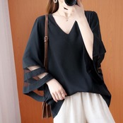 トップス プルオーバー 袖あり ホルンスリーブ ボリュームスリーブ Vネック フレア デザイン オーバーサイズ 美ライン ニュアンス 透け感 シースルー カラバリ ロマンチック リラックス かわいい 大人可愛い きれいめ シンプル カジュアル 大人 上品 おしゃれ お洒落 大人可愛い 大人女子 こなれ感 ラブリー キュート ガーリー 個性的 エレガント モダン 主役級 存在感 抜け感 ベーシック ヨーロッパカジュアル ブリティッシュ スタンダード 洗練 無地 エイジレス