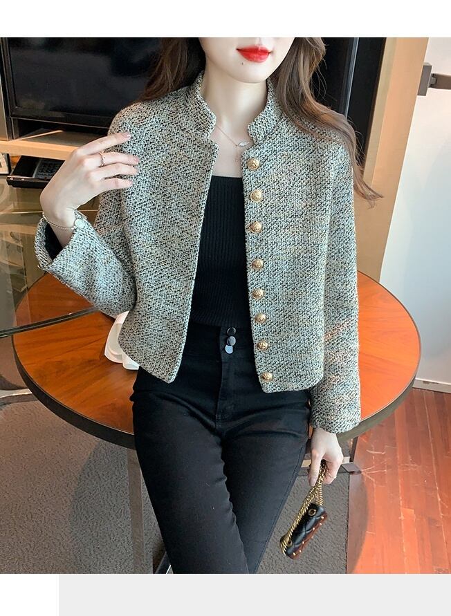 ツイードジャケット アウター ジャケット 上着 ショート ショート丈 半端丈 長袖 スタンドカラー スリム ストレート 前開き ボタン ツイード きれいめ シンプル 大人 上品 おしゃれ お洒落 かっこいい スタイリッシュ 大人女子 こなれ感 クール モード系 セクシー エレガント モダン フォーマル S M L XL 2XL 灰色 グレー 大人カラー モノトーン 春 秋 入学式 入園式 卒業式 卒園式 レディース ママ オフィス ビジネス OL 通勤 お出かけ イベント 着回し コーデ 定番 トレンド