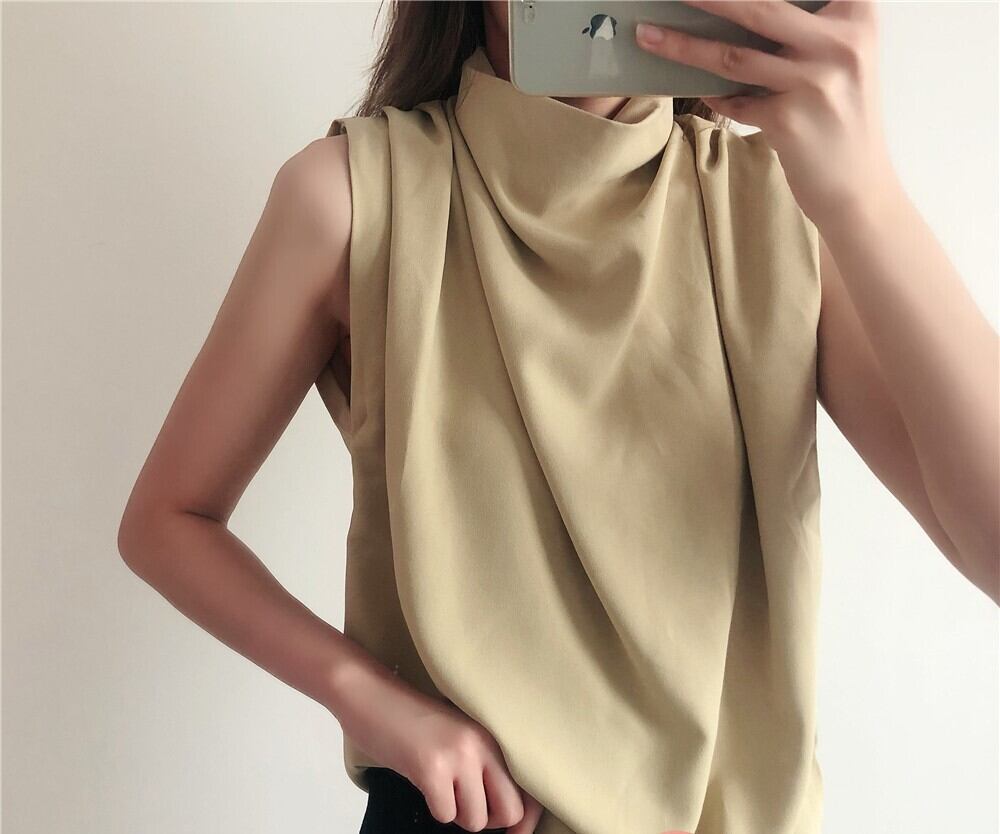 ノースリーブシャツ トップス スタンドカラー 無地 ホワイト カーキ レギュラー丈 ポリエステル XS S M L プリーツ ブラウス カットソー プルオーバー 袖なし 襟なし Iライン かわいい 大人可愛い きれいめ シンプル 大人 上品 おしゃれ お洒落 大人女子 こなれ感 ラフ キュート ガーリー 個性的 クール モード系 エレガント 存在感 抜け感 誕生日 入学式 謝恩会 披露宴 10代 20代 レディース 女性用 オフィス ビジネス OL 通勤 デート パーティー ファッション コーデ スタイル