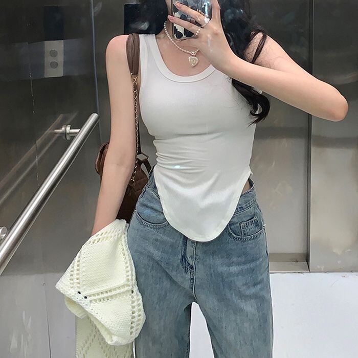 アシンメトリーなデザインのキャミソールの2点セットとなっております。