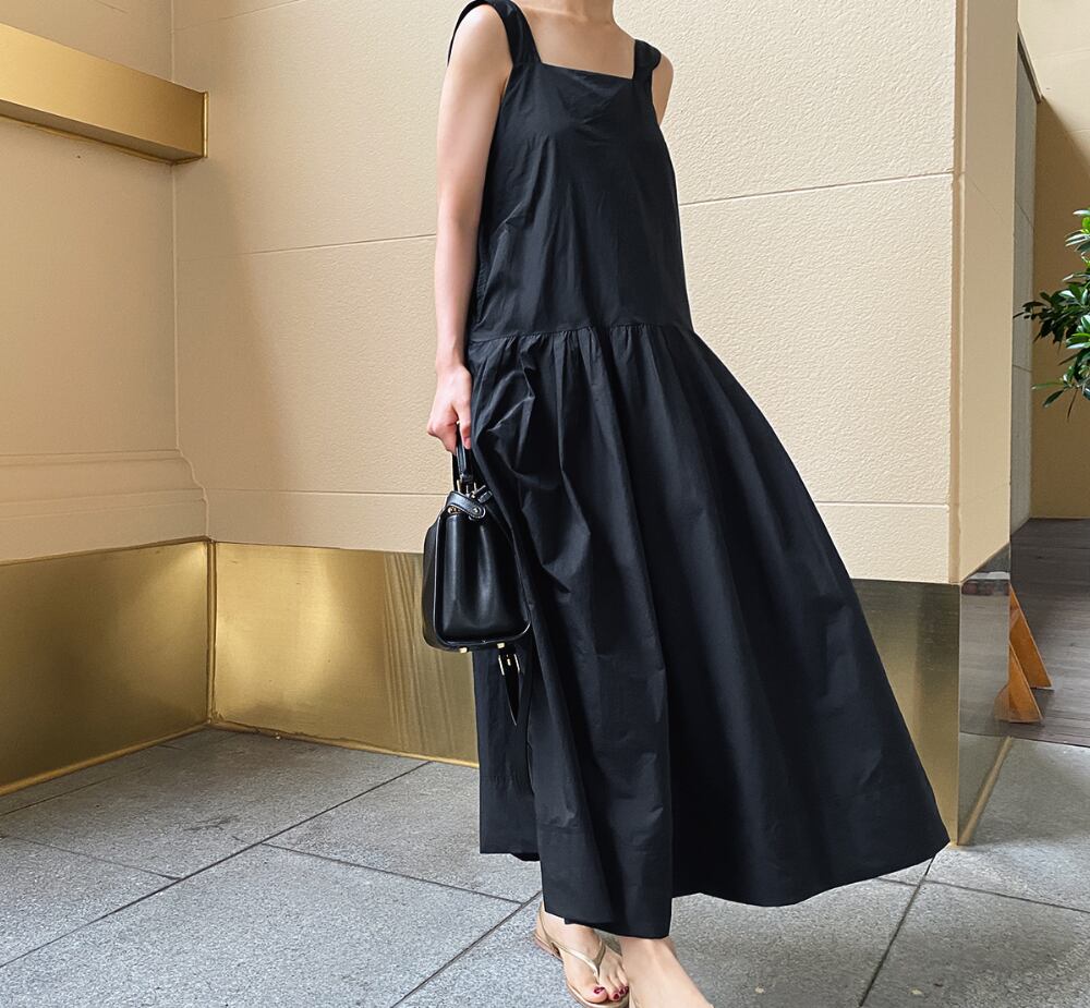 ローウエスト ワンピース ワンピドレス ロング ロング丈 ノースリーブ スクエアネック 切り替えデザイン ギャザー かわいい 大人可愛い きれいめ シンプル カジュアル 大人 上品 おしゃれ お洒落 大人女子 こなれ感 ラフ ガーリー ルーズ 個性的 クール モード系 エレガント モダン 抜け感 S M L XL ゆったり ゆる 黒 ブラック 大人カラー モノトーン 無地 春 夏 レディース デート お出かけ 休日 リゾート 旅行 着回し 普段使い 韓国系 オルチャン 楽ちん 体型カバー 定番