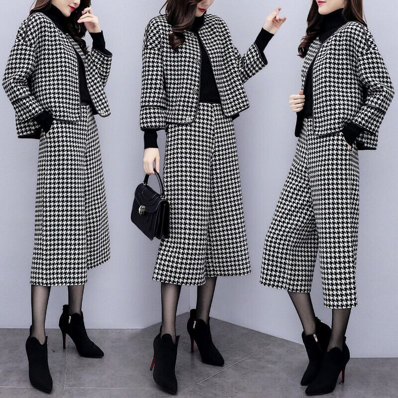 ボトムス アウター セットアップ ジャケット ワイドパンツ 膝下 ミモレ丈 袖あり 長袖 ラウンドネック 上下セット 2点セット お得 かわいい 大人可愛い きれいめ シンプル カジュアル 大人 上品 おしゃれ かっこいい レトロ 大人女子 こなれ感 エレガント 主役級 存在感 千鳥格子 春 秋 冬 誕生日 謝恩会 母の日 10代 20代 30代 40代 50代 60代 レディース ママ オフィス OL 通勤 デート お出かけ 女子会 着回し モテ 美脚 ギフト S M L XL 2XL 3XL ブラック