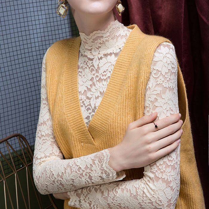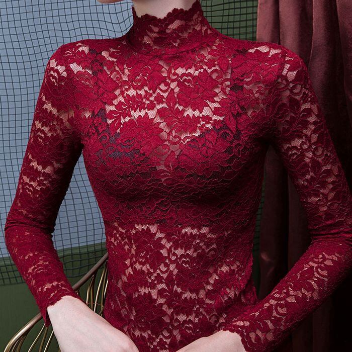 トップス ブラウス ハイネック レース レギュラー丈 袖あり 長袖 スカラップ 襟なし スリム 細身 レース プルオーバー 透け感 かわいい 大人可愛い きれいめ 大人 おしゃれ お洒落 大人可愛い 大人女子 こなれ感 ラブリー キュート ガーリー 柄 フラワー 春 秋 10代 20代 30代 レディース 女性用 学生 デート お出かけ 女子会 お泊まり 休日 ホテル レストラン 韓国 ファッション コーデ モテ 体系カバー トレンド S M L XL 2XL 3XL ホワイト ブラック ベージュ