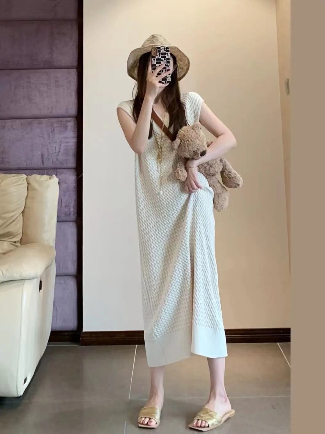 ニットワンピース ワンピース ニットソー 膝下 ミモレ ミモレ丈 半端丈 フレンチスリーブ Vネック ストレート 伸縮性 ニット サマーニット かわいい 大人可愛い きれいめ シンプル カジュアル 大人 上品 おしゃれ お洒落 大人女子 こなれ感 ラフ ガーリー ルーズ モード系 エレガント モダン 抜け感 S M L XL ゆったり ゆる 白 ホワイト 大人カラー 無地 春 夏 レディース ママ お出かけ 休日 リゾート 旅行 着回し 普段使い 韓国 韓国系 コーデ 楽ちん 体型カバー 定番
