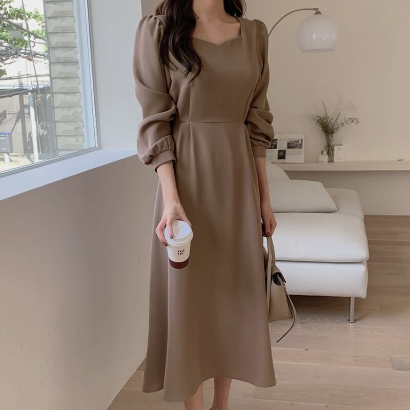 ワンピース プルオーバー フレアワンピース ロング ロング丈 袖あり 長袖 ボリューム袖 オフショル フレア セミフレア かわいい 大人可愛い きれいめ 大人 上品 おしゃれ お洒落 かっこいい 大人女子 こなれ感 キュート ガーリー 無地 春 秋 冬 10代 20代 30代 レディース 女性用 学生 通学 デート お出かけ 女子会 パーティー イベント レストラン ショッピング 韓国 韓国系 ファッション コーデ スタイル 体系カバー 美脚 トレンドインスタ映え サイズ S M L 色展開 キャメル