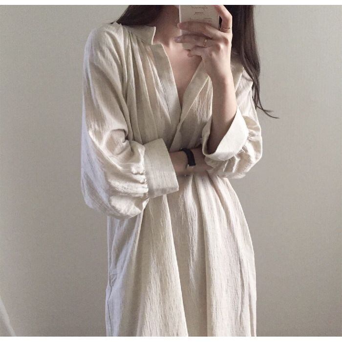 こなれた雰囲気が素敵なロングシャツワンピースです。