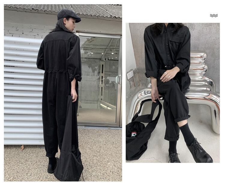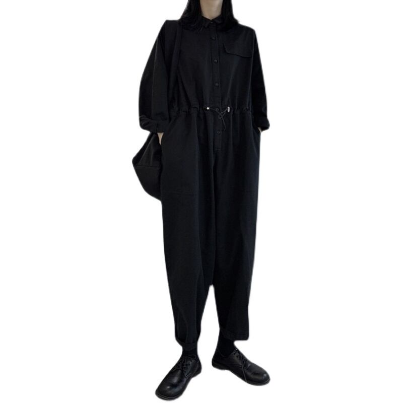 つなぎ オールインワン オーバーオール ロング ロング丈 袖あり 長袖 襟付き ストレート ウエストマーク ポケット ハイウエスト 前開き 大人可愛い おしゃれ お洒落 かっこいい こなれ感 ボーイッシュ スポーティー 個性的 クール モード系 モダン 無地 春 秋 冬 二次会 10代 20代 30代 レディース 女性用 お出かけ 女子会 お泊まり 休日 アウトドア パーティー イベント レストラン ショッピング 韓国 トレンド 流行 インスタ映え サイズ フリーサイズ ワンサイズ 色展開 ブラック