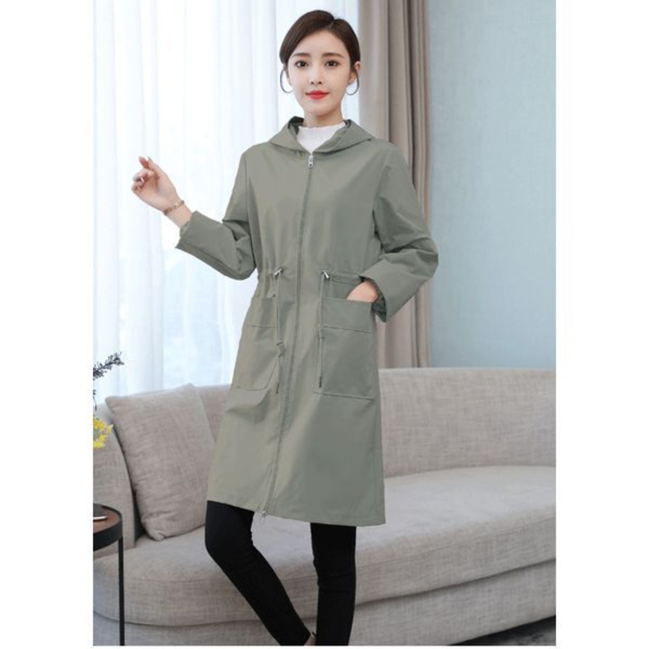 フード付きスプリングコートです。