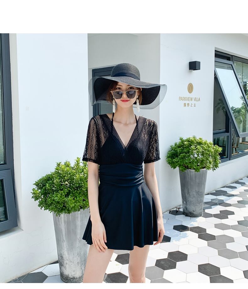レースのエレガントな雰囲気が魅力のワンピース型のスイムウェアです。