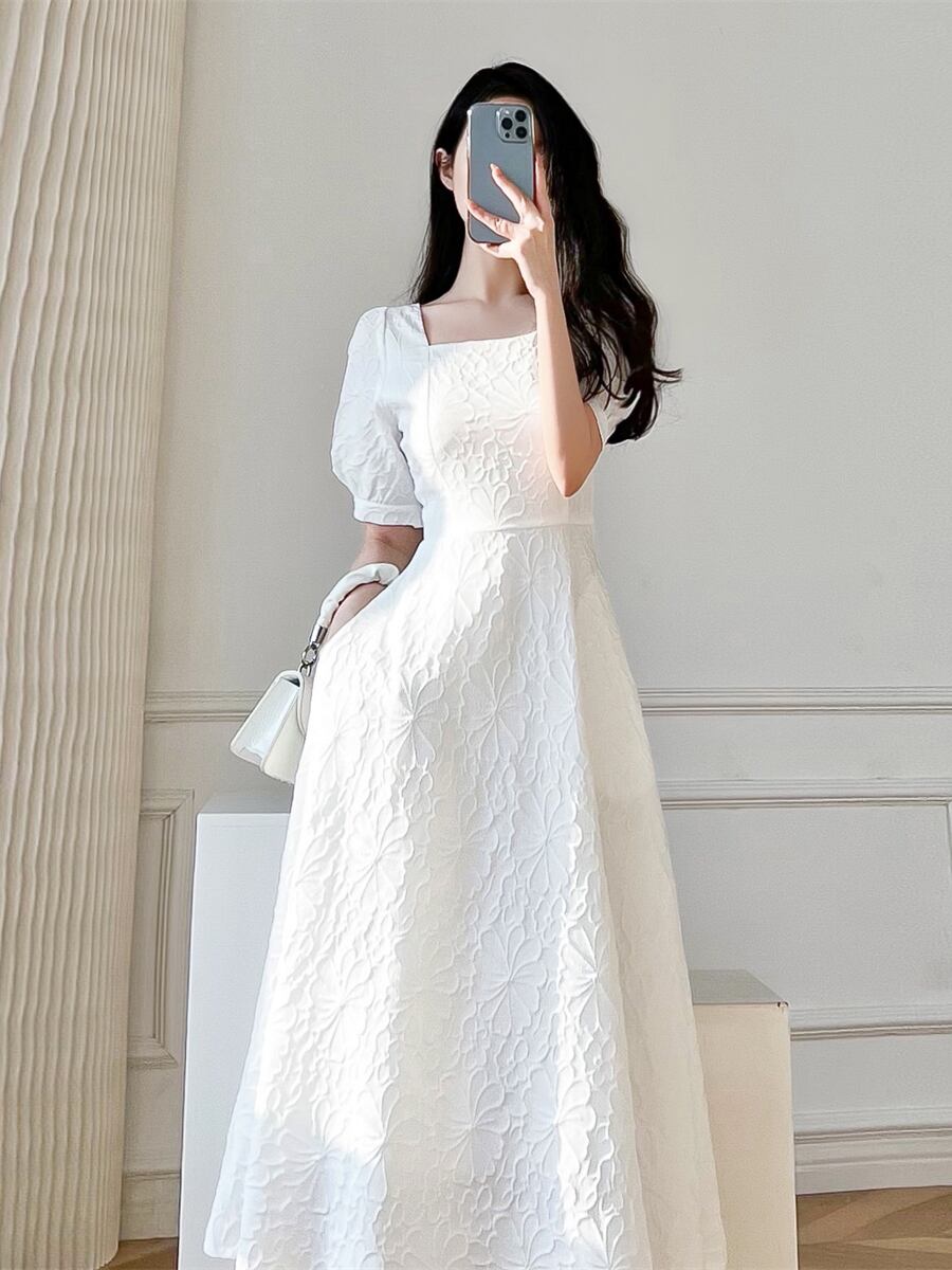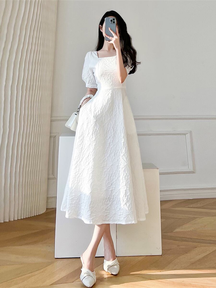 ワンピース フレアワンピース ミディ丈 袖あり 半袖 パフスリーブ スクエアネック セミフレア Aライン かわいい 大人可愛い カジュアル 大人 上品 おしゃれ お洒落 レトロ 大人女子 こなれ感 ラブリー キュート 主役級 存在感 抜け感 フェミニン シック 大人カジュアル 無地 夏 10代 20代 レディース 女性用 デート お出かけ 女子会 休日 パーティー イベント 旅行 海 ガーデン 着回し 重ね着 韓国 ファッション コーデ スタイル モテ 体系カバー S M L XL 2XL プラスサイズ