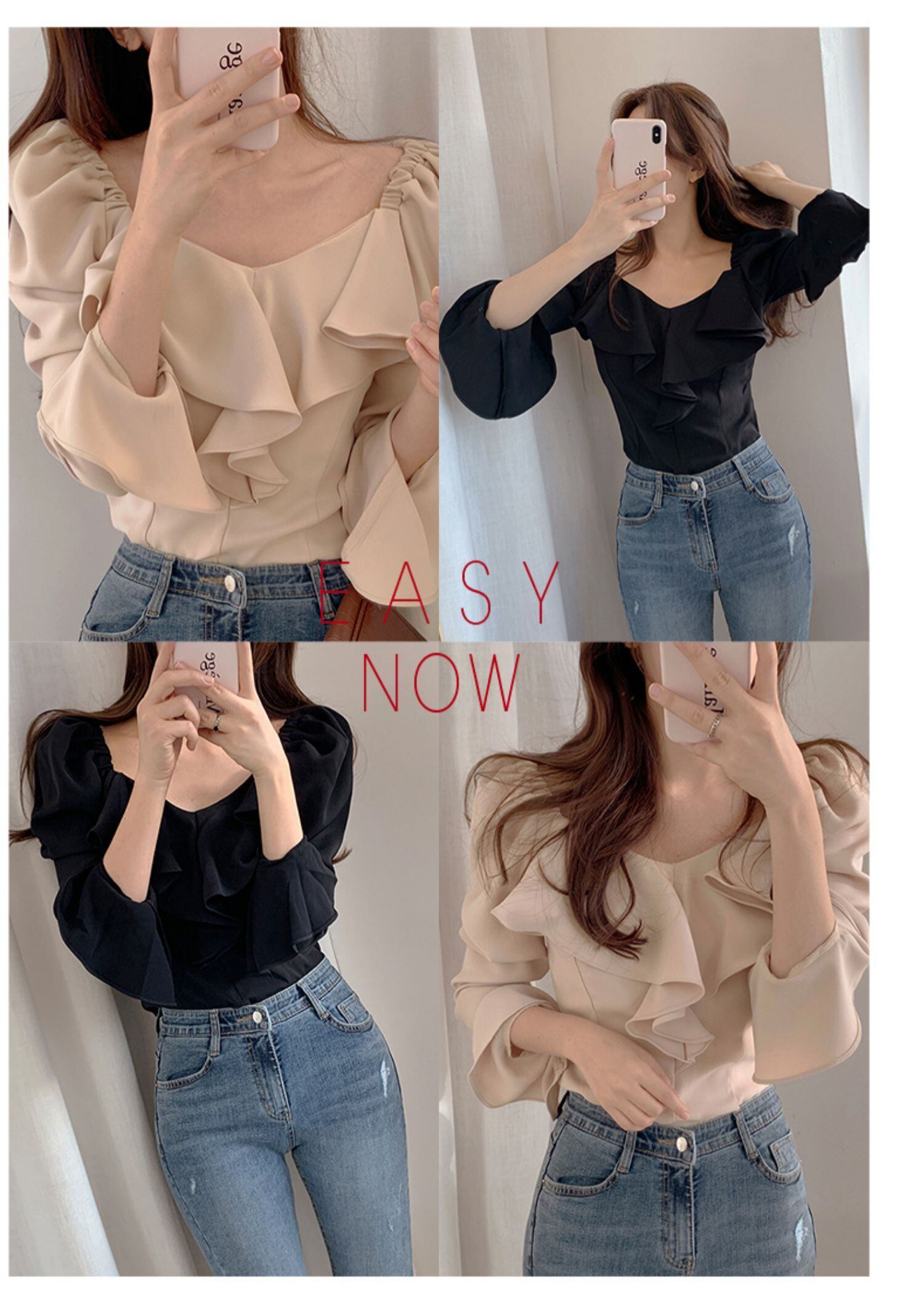 胸元のフリルがとてもおしゃれなブラウスです。