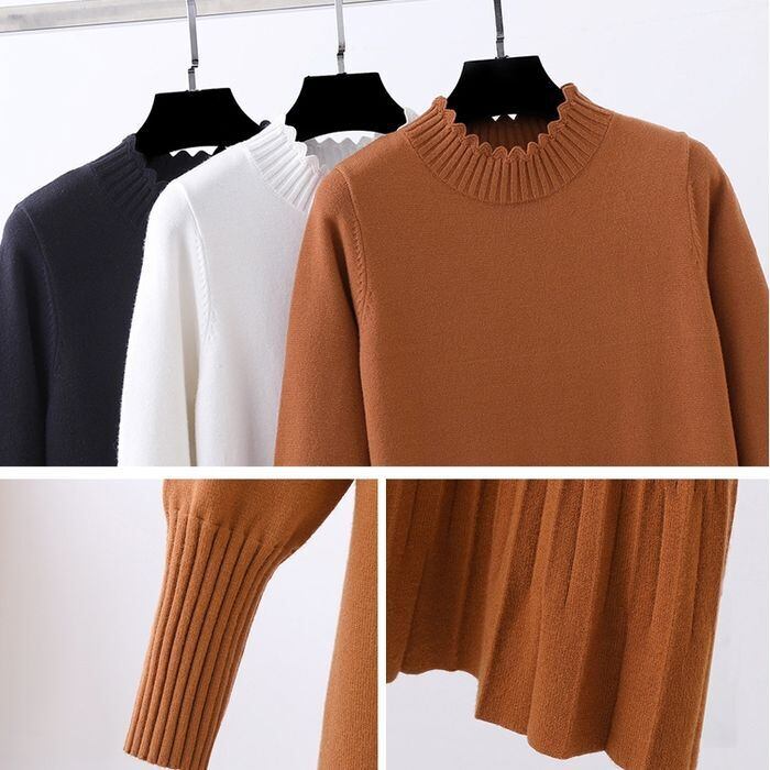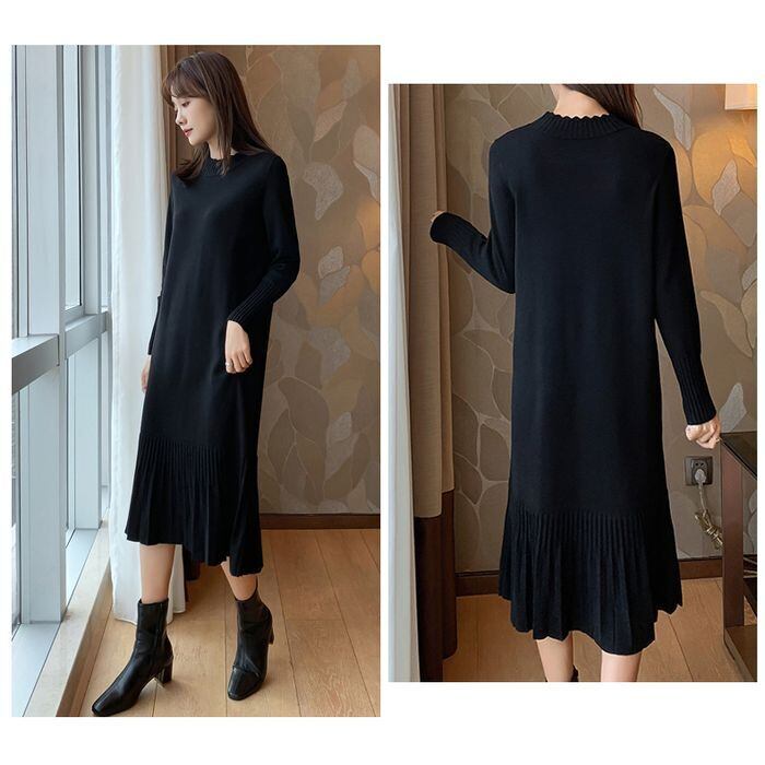 ワンピース カットソー ニットソー ワンピドレス ミモレ ミモレ丈 長袖 スカラップネック ストレート Aライン 切り替えデザイン プリーツ ハイウエスト 伸縮性 かわいい 大人可愛い きれいめ シンプル 大人 上品 おしゃれ お洒落 大人女子 こなれ感 ラフ ガーリー モード系 エレガント モダン 抜け感 M L XL 2XL ゆったり ゆる 黒 ブラック ブラウン ホワイト 大人カラー 無地 秋 冬 春 レディース OL 通勤 デート お出かけ 着回し 普段使い 韓国系 楽ちん モテ インスタ映え