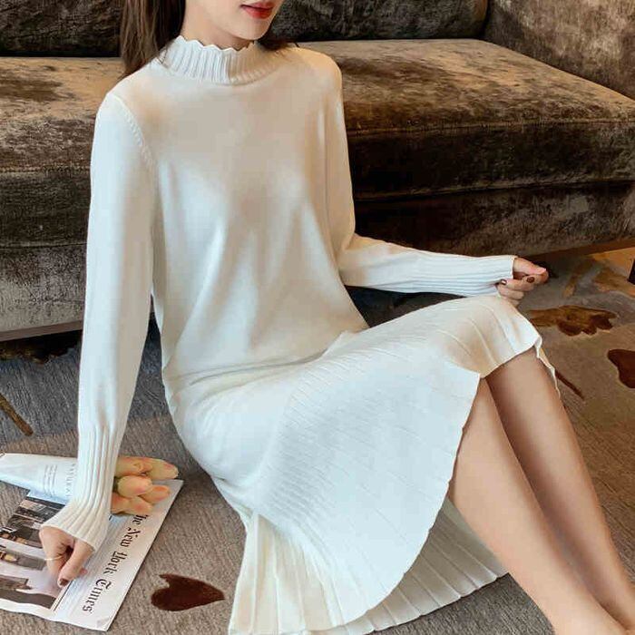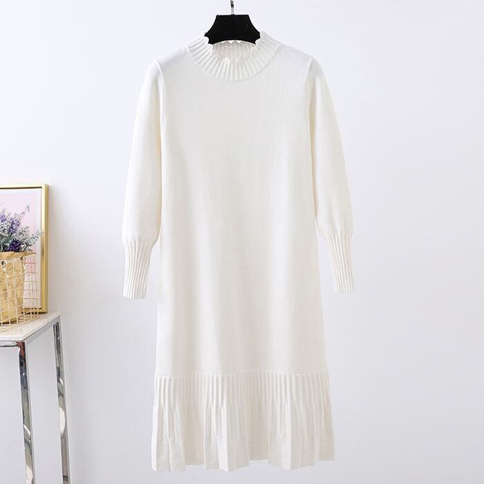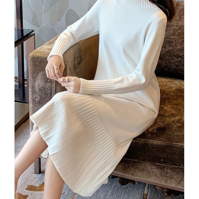 切り替えのプリーツスカートが美しいニットワンピースです。