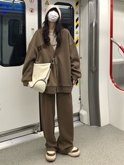 プラスサイズ 上下セット セットアップ ルームウェア カーディガン ジャケット 部屋着 長袖 ボリューム袖 Vネック 襟なし ストレート 前開き ボタン ゆったり 2点セット ツーピース かわいい シンプル カジュアル 大人 かっこいい こなれ感 ラフ メンズライク マニッシュ ボーイッシュ スポーティー ルーズ クール 抜け感 スポーツ ストリート 無地 春 秋 10代 20代 30代 40代 休日 楽ちん L XL 2XL 3XL 4XL 大きいサイズ 大きい 大きめ 茶色 ブラウン 灰色 グレー