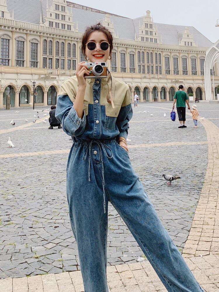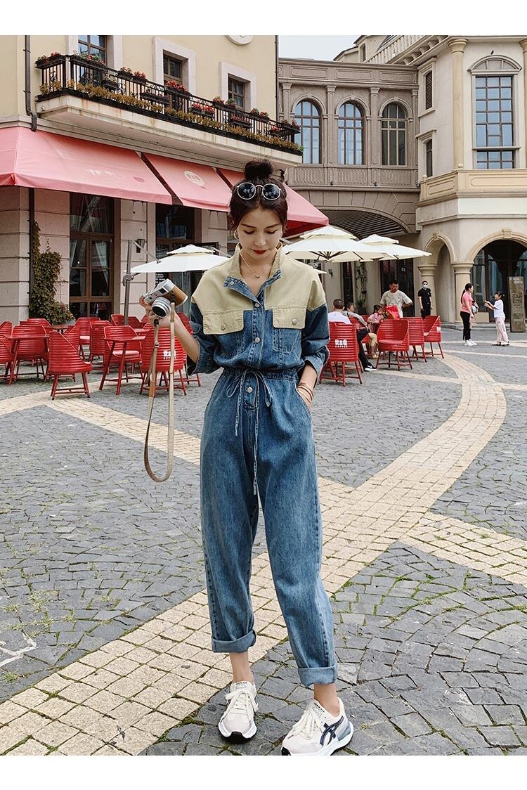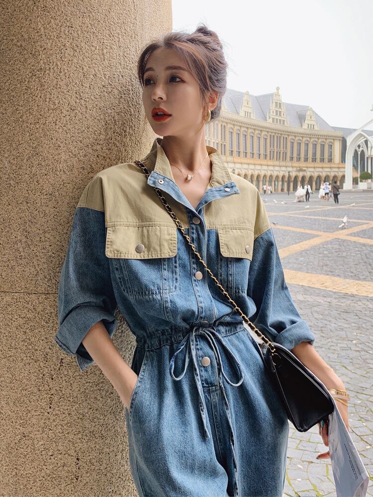 オールインワン ジャンプスーツ ストレートパンツ ロング ロング丈 袖あり 長袖 スタンドカラー ストレート ウエストゴム バイカラー ポリエステル かわいい カジュアル おしゃれ お洒落 レトロ こなれ感 ラフ メンズライク ボーイッシュ スポーティー ルーズ 主役級 存在感 抜け感 無地 春 秋 10代 20代 レディース 女性用 学生 通学 デート お出かけ 女子会 お泊まり 休日 アウトドア イベント 旅行 着回し 普段使い 韓国 ファッション コーデ スタイルUP S M L XL プラスサイズ