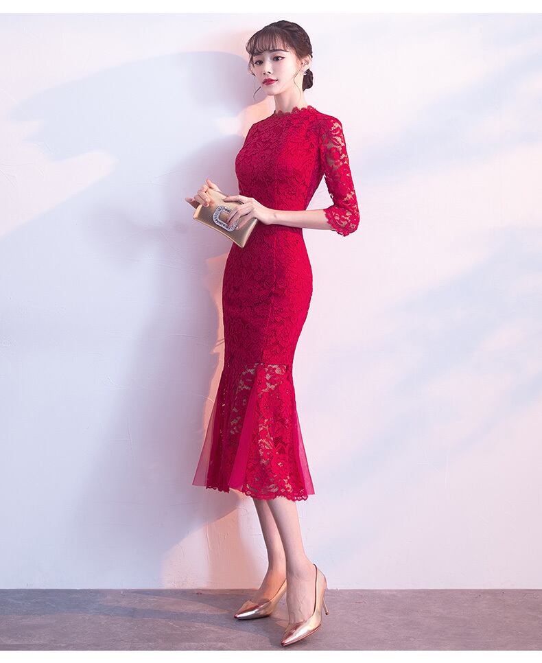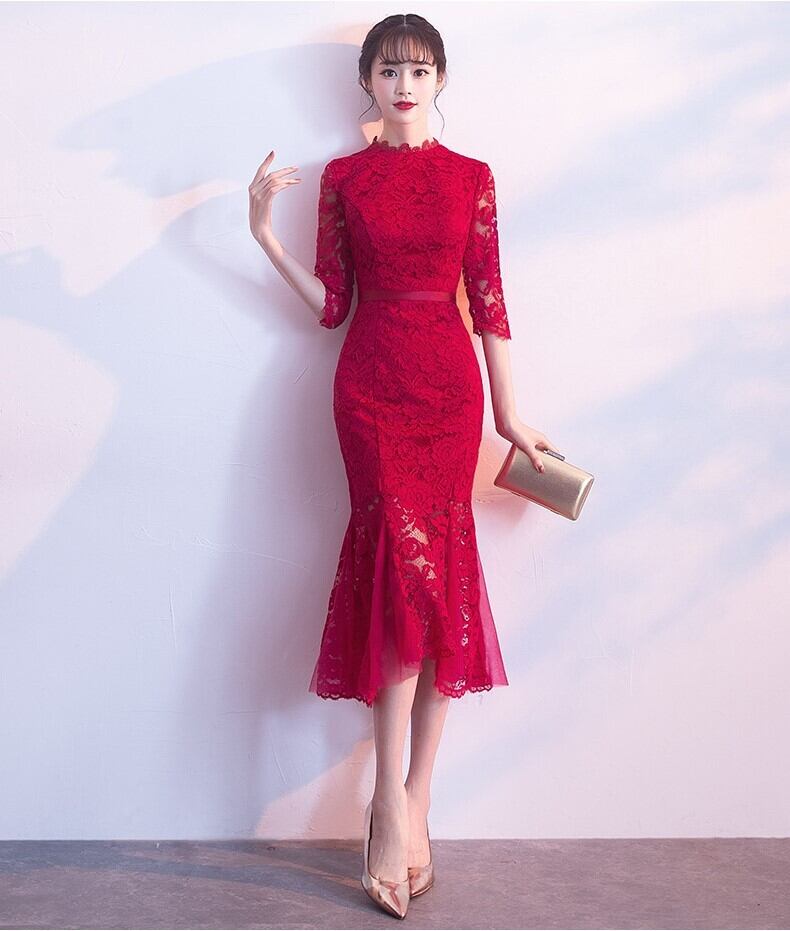 チャイナドレス ワンピース ワンピドレス ロング丈 無地 ラウンドネック 冬 結婚式 エレガント レッド 赤 ピッグレッド ダークグリーン シャンパン シルバーグレー ブラック 黒 S M L XL 2XL 3XL 膝丈 袖あり 七分袖 マーメイド レース ウエストマーク ハイウエスト 透け感 かわいい 大人可愛い きれいめ 大人 上品 おしゃれ お洒落 アジアン 大人女子 キュート ガーリー 存在感 花柄 披露宴 10代 20代 レディース 女性用 パーティー ファッション コーデ スタイル モテ