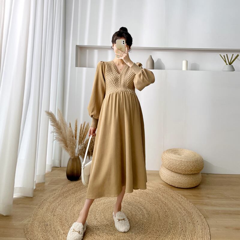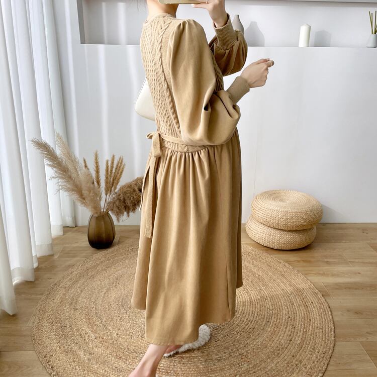 ワンピース ニット ニットスカート ミモレ ミモレ丈 袖あり 長袖 ボリューム袖 Vネック フレア Aライン ハイウエスト ケーブルニット ニット 大人可愛い きれいめ シンプル カジュアル 大人 上品 大人女子 こなれ感 無地 秋 冬 10代 20代 30代 レディース 女性用 ママ マタニティ OL 通勤 学生 通学 デート お出かけ 女子会 お泊まり 休日 アウトドア イベント リゾート レストラン ショッピング 韓国 コーデ モテ トレンド 流行 サイズ M L XL 2XL 色展開 カーキ