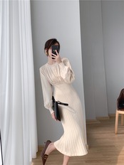 ワンピース ニット ニットスカート ロング ロング丈 袖あり 長袖 Uネック フレア プリーツ ハイウエスト 前開き ニット かわいい きれいめ シンプル カジュアル 大人 上品 おしゃれ お洒落 大人女子 こなれ感 無地 秋 冬 10代 20代 30代 レディース 女性用 OL 通勤 学生 通学 デート お出かけ 女子会 お泊まり 休日 イベント リゾート レストラン ショッピング 韓国 韓国系 オルチャン ファッション 流行 サイズ M L XL 2XL 色展開 ブラック アプリコット パープル