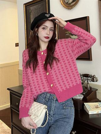 トップス ガーディガン ニットカーディガン セーター 格子縞 ラウンドネック ショート丈 通勤 秋 ピンク S M L 長袖 ボタン ジャケット ショート 袖あり 襟なし 伸縮性 0 かわいい 大人可愛い カジュアル 大人 おしゃれ お洒落 レトロ 大人女子 ラフ ラブリー キュート ガーリー ルーズ エレガント モダン 存在感 格子柄 10代 20代 レディース 女性用 女の子 オフィス ビジネス OL デート お出かけ 女子会 休日 着回し ファッション コーデ スタイル 楽ちん モテ トレンド 流行