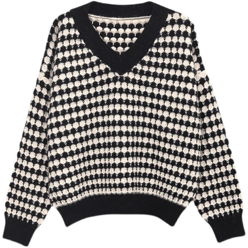 トップス セーター ニット レギュラー丈 袖あり 長袖 Vネック かわいい 大人可愛い きれいめ シンプル 大人 上品 おしゃれ 大人女子 キュート ガーリー 柄 格子柄 春 秋 10代 20代 30代 レディース 女性用 オフィス ビジネス OL 通勤 学生 通学 デート お出かけ 女子会 休日 レストラン ショッピング 韓国 韓国系 オルチャン ファッション コーデ 楽ちん モテ トレンド 流行 サイズ S M L XL 2XL 3XL 色展開 グリーン 緑色 ブラウン 茶色 ブラック 黒色