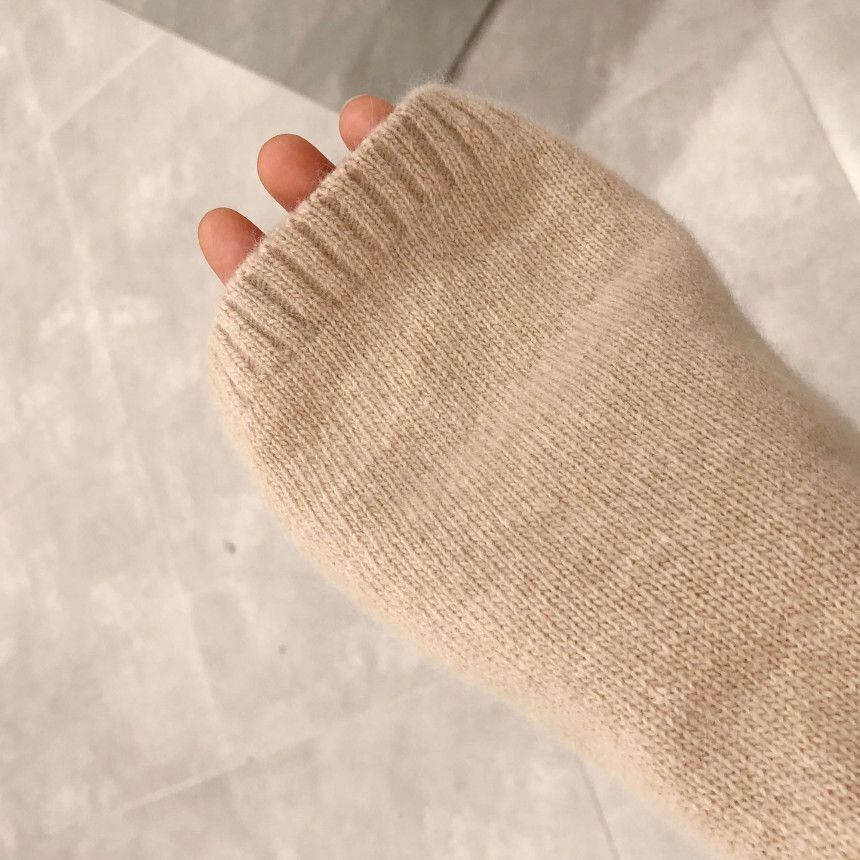 センターの大胆なスリットがとてもデザイン的なタートルネックニットワンピースです。