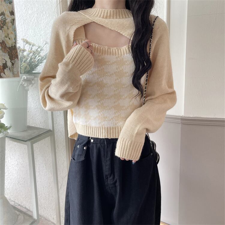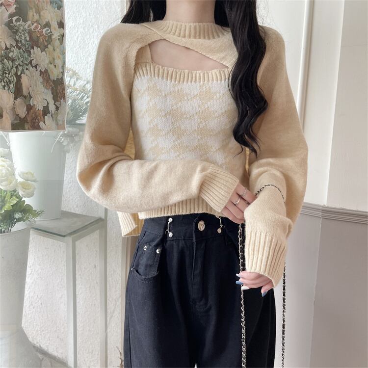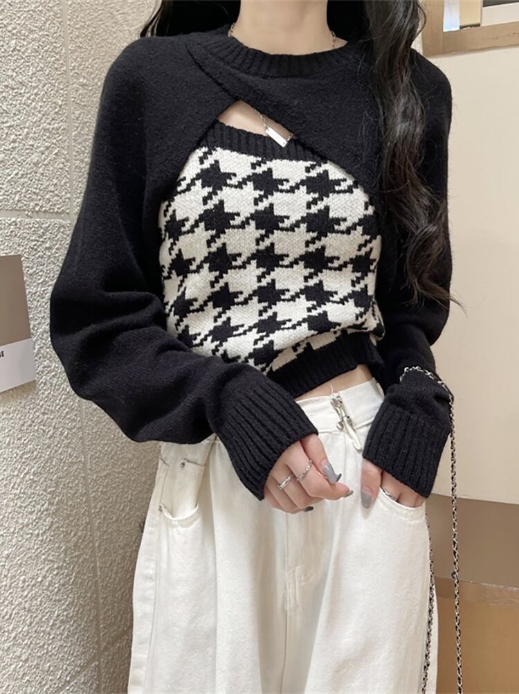 トップス セーター ニット ショート ショート丈 袖あり 長袖 ボリューム袖 ハイネック かわいい 大人可愛い きれいめ シンプル カジュアル 上品 おしゃれ お洒落 大人女子 こなれ感 クール モード系 セクシー 柄 千鳥格子 春 秋 10代 20代 30代 レディース 女性用 学生 通学 デート お出かけ 女子会 お泊まり 休日 レストラン ショッピング 韓国 韓国系 ファッション コーデ スタイル モテ トレンド サイズ フリーサイズ ワンサイズ 色展開 グレー アプリコット カーキ ブラック