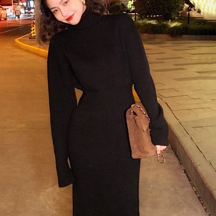 ワンピース ニットソー セーター ニット ロング ロング丈 袖あり 長袖 タートルネック 細身 ストレート かわいい 大人可愛い きれいめ カジュアル 大人 上品 おしゃれ お洒落 大人女子 こなれ感 クール モード系 無地 春 秋 10代 20代 30代 レディース 女性用 通勤 学生 通学 デート お出かけ お泊まり 休日 リゾート レストラン ショッピング 韓国 韓国系 ファッション コーデ スタイル 暖かい トレンド 流行 サイズ XS S M L XL 色展開 ブラック ホワイト グリーン