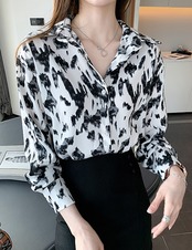 トップス シャツ ブラウス レギュラー丈 袖あり 長袖 Vネック 襟付き シフォン 透け感 シースルー ポリエステル かわいい 大人可愛い シンプル カジュアル 大人 上品 おしゃれ お洒落 大人女子 こなれ感 キュート 柄 ヒョウ柄 春 夏 10代 20代 30代 レディース 女性用 学生 通学 デート お出かけ 女子会 お泊まり 休日 パーティー イベント レストラン ショッピング 韓国 韓国系 ファッション コーデ スタイル モテ トレンド 流行 サイズ S M L 色展開 モノトーン ホワイト