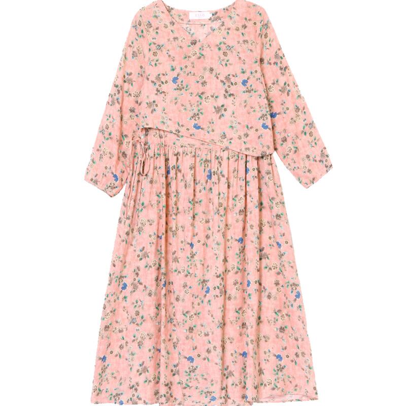 ハイウエスト ワンピース デート フレアワンピース 膝丈 ひざ丈 ミディアム丈 袖あり 長袖 Vネック 襟なし リボン ウエストリボン ゆったり アシメ アシンメトリー かわいい 大人可愛い きれいめ シンプル 大人 上品 おしゃれ お洒落 レトロ 大人女子 こなれ感 ラブリー キュート ガーリー 抜け感 花柄 小花柄 春 秋 10代 20代 30代 40代 OL 学生 お出かけ 女子会 休日 イベント リゾート 旅行 M L XL 2XL 青 ピンク