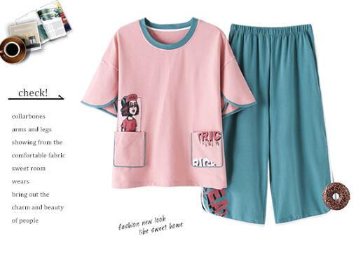 カジュアルで可愛いルームウェアの上下セットです。