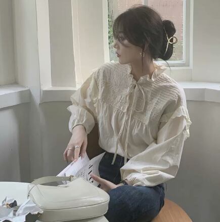 大人可愛い雰囲気漂うトップスです。お仕事でもプライベートでも様々な場面で活躍しそうです。シンプルなホワイトで上品でおしゃれです!!