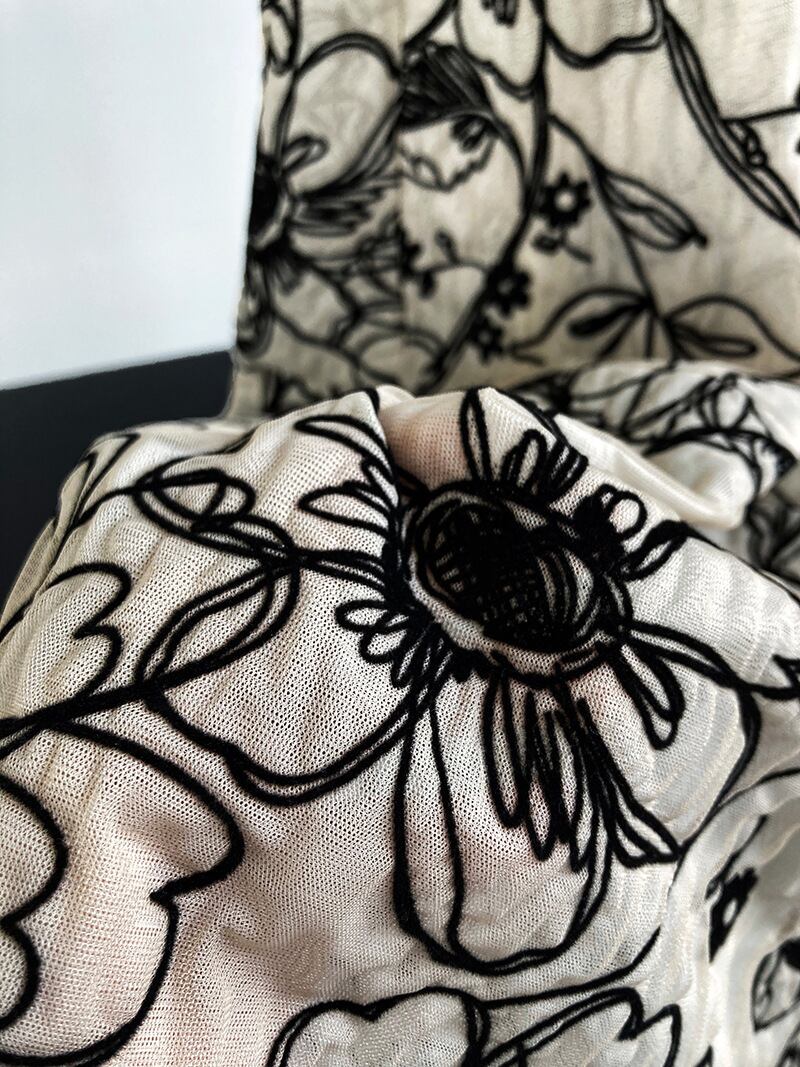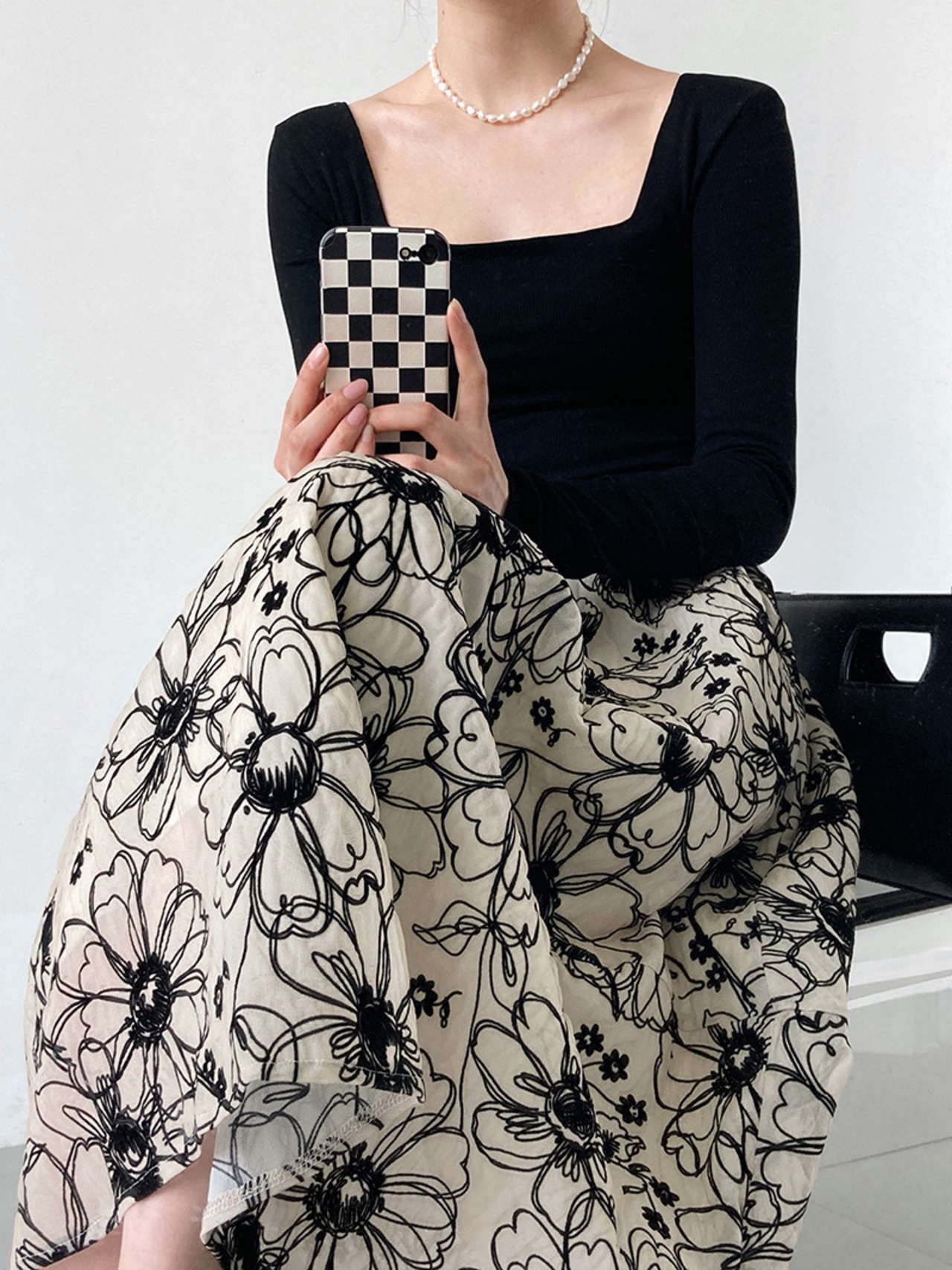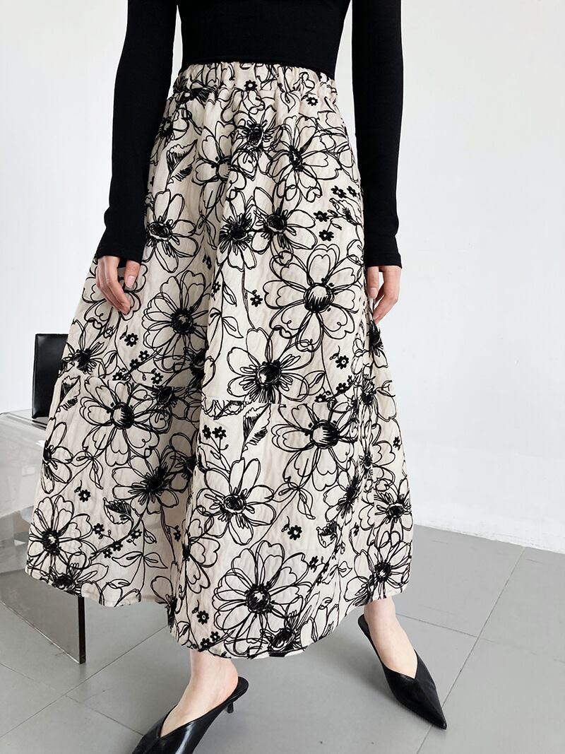 シックでエレガントなフラワーエンブロダイリースカートです。