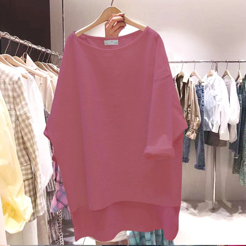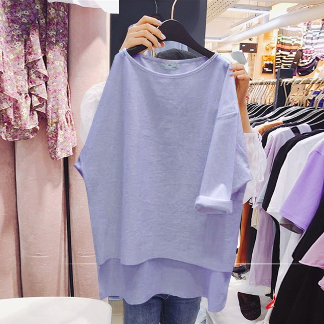 トップス Tシャツ ミディアム丈 ミドル丈 袖あり 7分袖 七分袖 ラウンドネック ワイド アシンメトリー ハイウエスト シンプル カジュアル おしゃれ お洒落 レトロ こなれ感 ラフ メンズライク マニッシュ ボーイッシュ 無地 春 夏 秋 10代 20代 30代 レディース 女性用 ママ 学生 通学 お出かけ 公園 休日 アウトドア 着回し 普段使い 韓国系 オルチャン ファッション コーデ 楽ちん 体系カバー S M L XL 2XL 白 ホワイト 黒 ブラック 紫 パープル ピンク ローズピンク